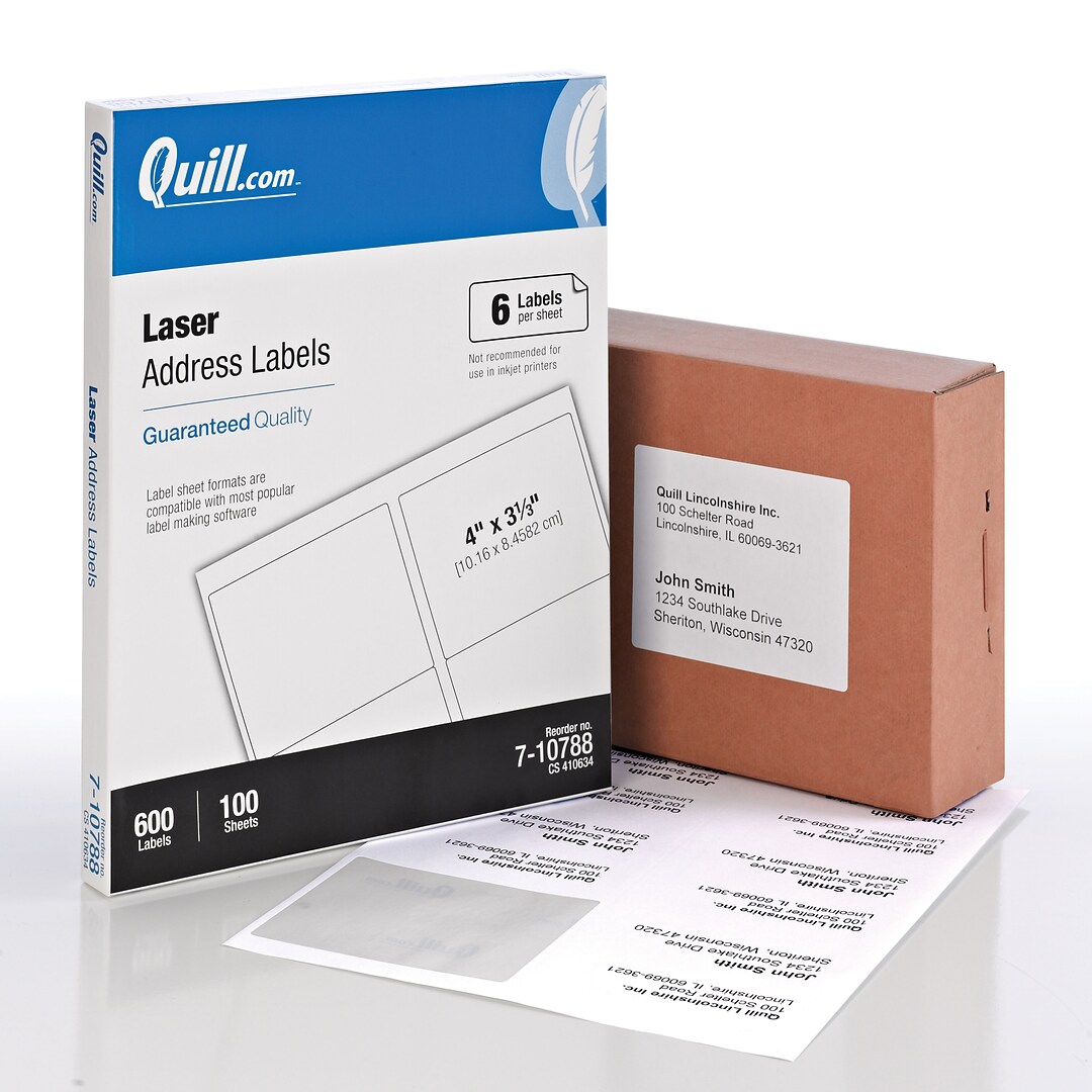 Quill Brand® Laser Address Labels, 3-1/3" x 4", White, 600 Labels (Compare to Avery 5164, 8164 & 8464)